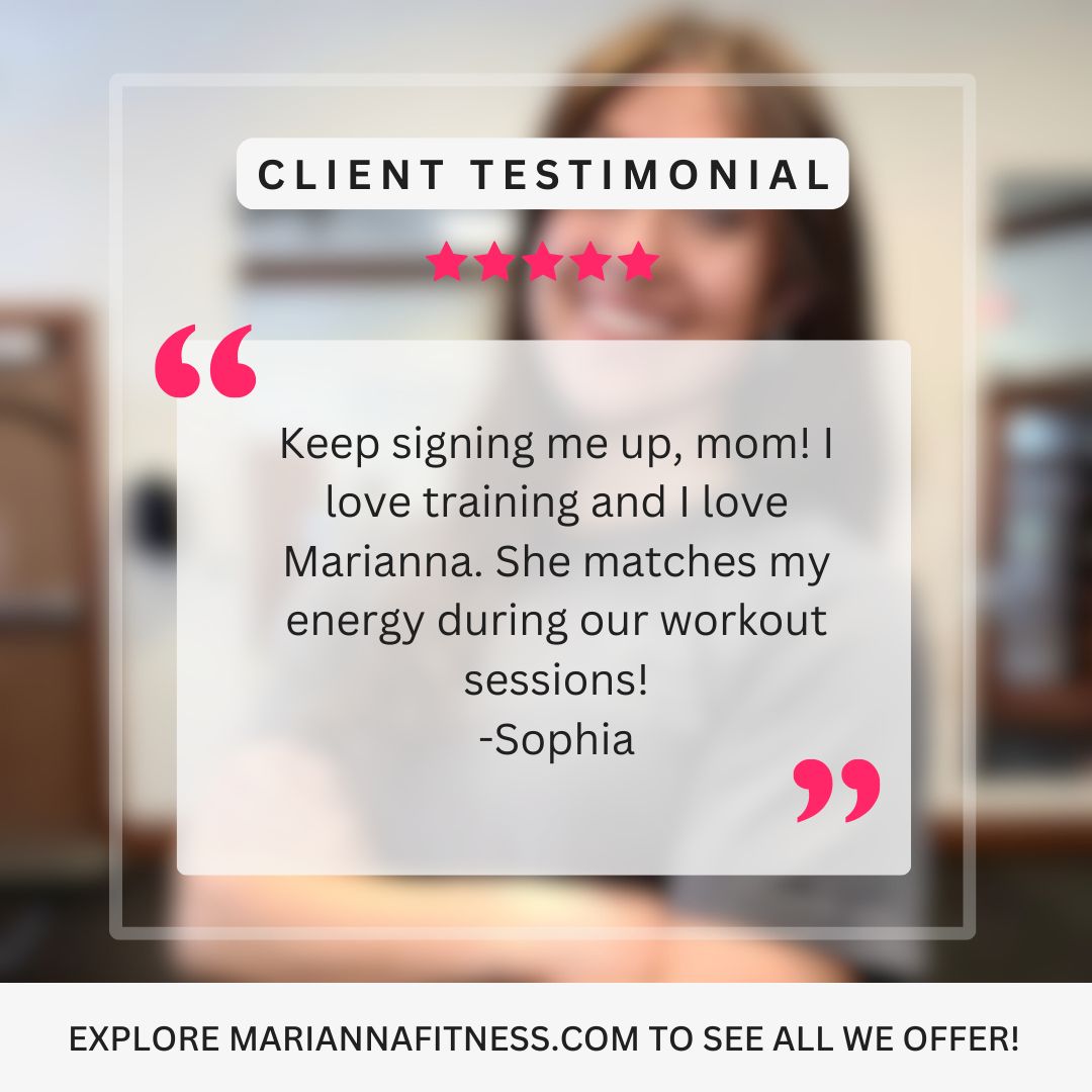 Marianna Fitness LLC is committed to helping people increase their quality of life through finding and maintaining their love of fitness and movement. The CEO, Marianna, has been a personal trainer and dance instructor for over 6 years, using resistance and mobility training to help clients achieve goals such as losing fat, building muscle, increasing flexibility, AND gaining confidence. Whether you love dancing, pilates, or weightlifting, you can find something to love here!
