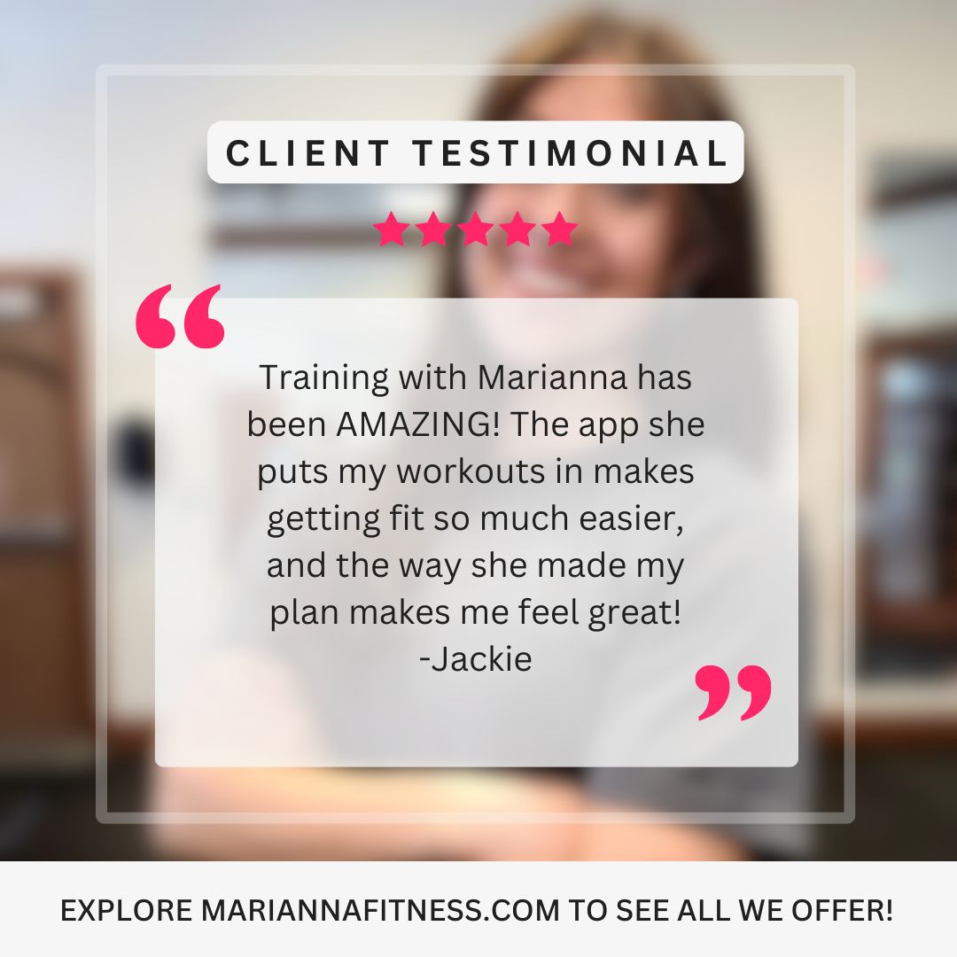 If you need to cancel a session or scheduled meeting, please contact mariannafitness1@gmail.com as soon as possible. We ask that you do your best to reach out at least 1 hour before your scheduled session/meeting.